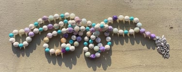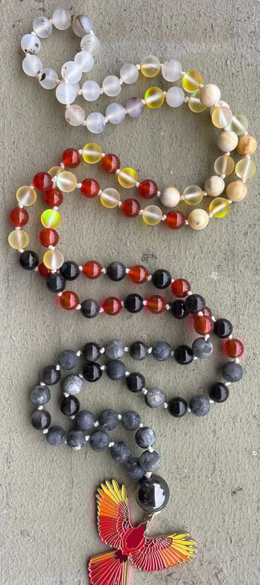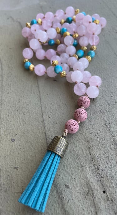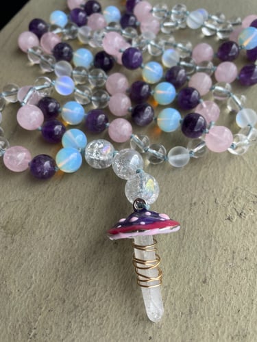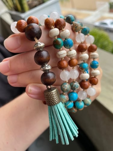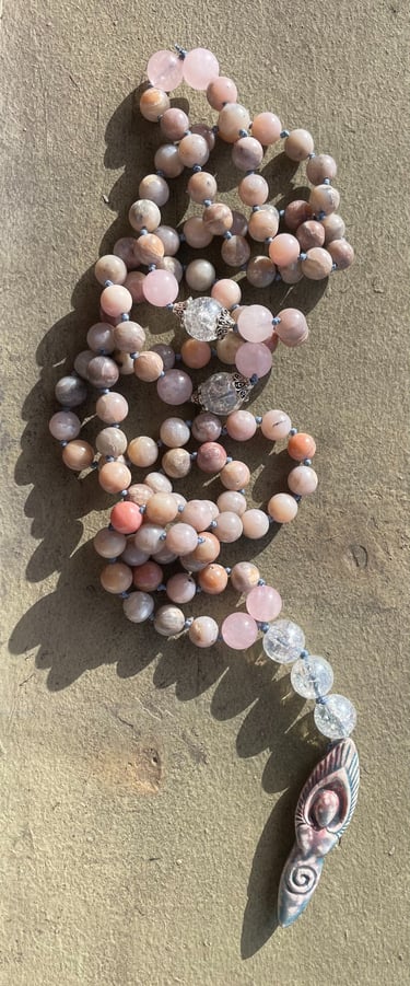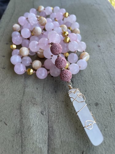 Lesley uses this concept for designing Frequency Malas so that the wearer can feel and process new information from the resonance of the design, the crystals, and the intentions used. Each mala becomes a unique piece of artwork that vibrates powerful and healing frequencies to benefit your own journey.